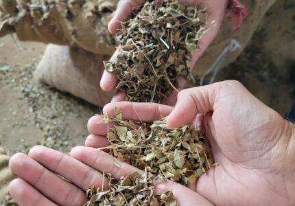 Nos champs sont entretenus avec respect et savoir-faire par nos équipes locales, qui récoltent à la main les feuilles précieuses servant à la fabrication de nos poudres végétales ...